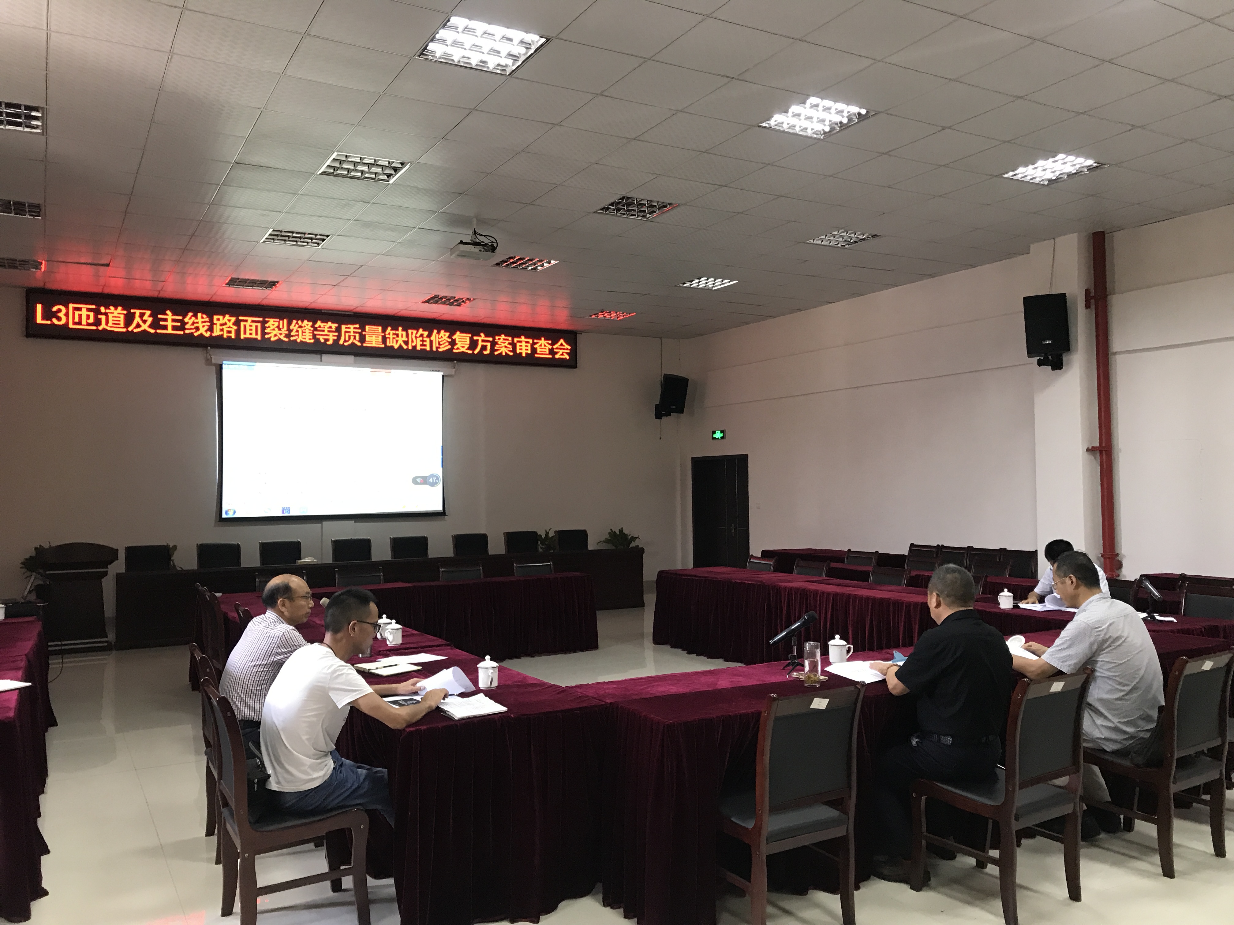 会上,与会人员对修复方案进行了认真的审阅,对方案中的L3匝道路面裂缝处理和沉陷处理等问题进行了深入的探讨并提出了评审意见,综合各方意见完善了修复方案,并且要求第一合同项目部做好施工前的交通组织方案及路政交警等审批工作,在8月中旬要完成修复工作。