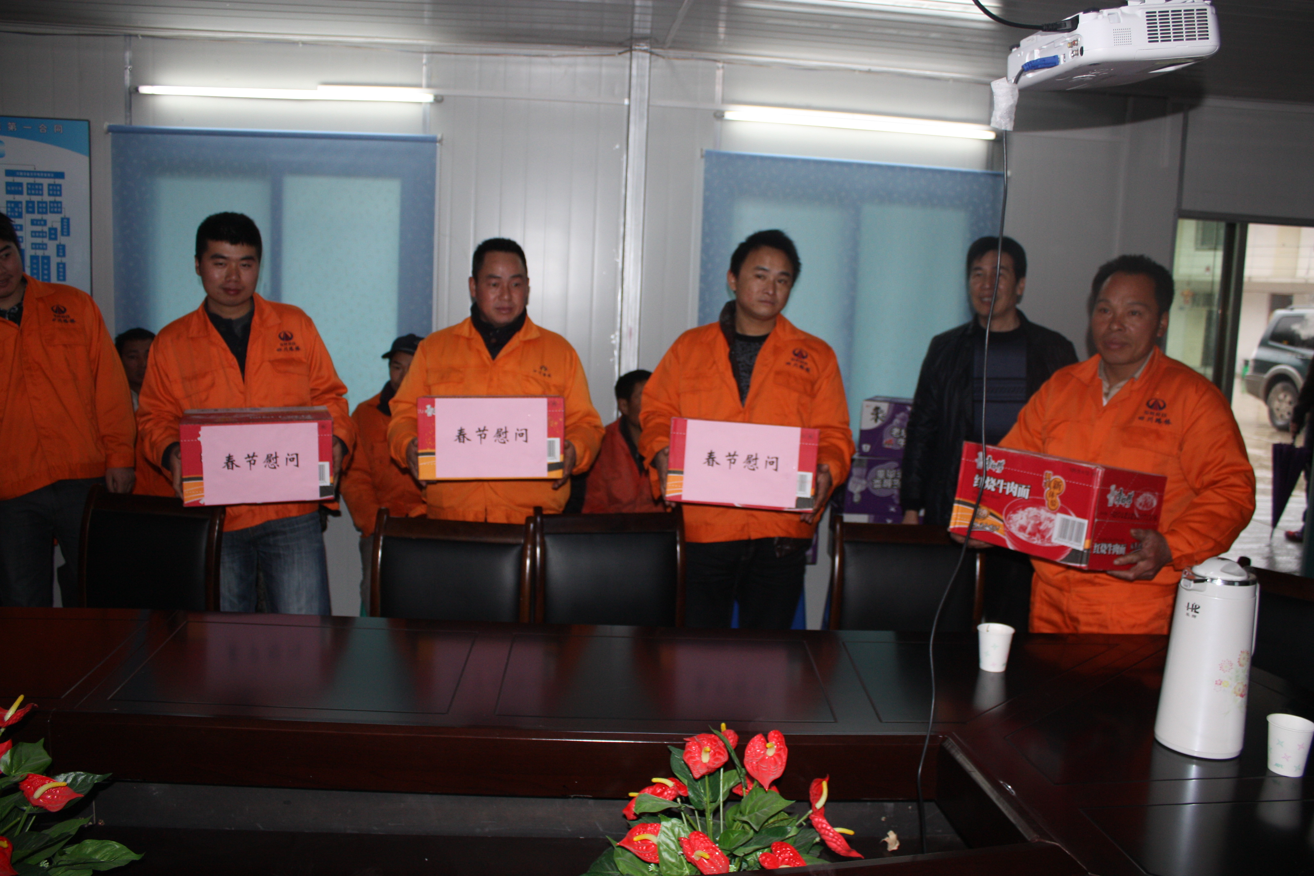 慰问小组一行先后前往通道公司第一合同段、第二合同段项目部,为一线工人送去慰问品和新年祝福,感谢他们为温州交通作出的无私奉献,并再三嘱咐留守工人要注意春节期间施工安全和人身安全,确保过个幸福祥和的新春佳节。