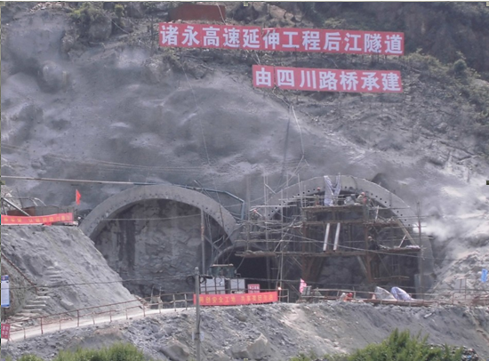 后江隧道全长471米,设计采用连拱隧道形式。中导洞为连拱隧隧道施工辅洞,主洞施工需在中导洞贯通并浇筑中隔墙后进行。后江隧道中导洞存在施工断面小、单次循环进尺短、爆破后出渣难、围岩等级变化大等施工难点,同时受民爆物品管制影响,隧道无法进行夜间施工。为确保后江隧道年内贯通目标任务的实现,通道公司及施工单位加大了人员与设备的投入,采取双向掘进的手段,提前实现了中导洞贯通。